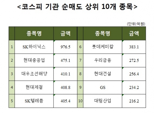 [주간 코스피 기관 순매도 상위 10개 종목]