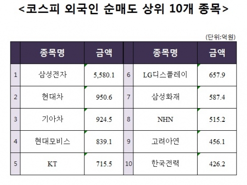[주간 코스피 외국인 순매도 상위 10개 종목]