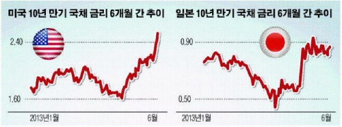 버냉키 의장의 출구전략 발언 이후 미국 일본 등 주요국의 채권 금리는 요동치고 있다. 미국 10년 만기 국채 금리는 2.5%를 넘어섰다. 연말에는 3%로 상승할 것이라는 주장도 나오고 있다.