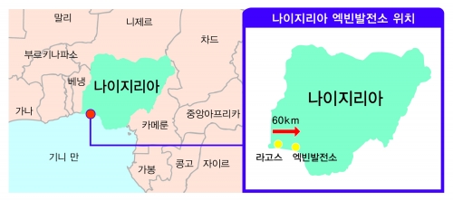 엑빈발전소는 나이지리아 경제수도 라고스의 동쪽 60㎞ 지점에 위치한 가스발전소다. 나이지리아 전체 전력의 30%를 생산하는 서부 아프리카 최대 발전소이기도 하다.