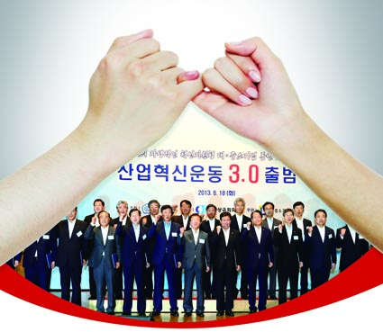 ‘산업혁신운동 3.0’은 1970~1980년대 개별기업의 성장에 집중했던 공장새마을운동(1.0)과 대기업·1차 협력사 중심의 성과공유제(2.0)를 발전시킨 동반성장 모델이다. 2·3차 협력사까지의 지원확대를 통한 대내외 어려움을 극복할 방안으로 주목받고 있다. 운동의 취지에 공감한 11개 대기업은 2013년부터 5년간 2055억원을 중소기업 지원을 위해 출연할 계획이다.