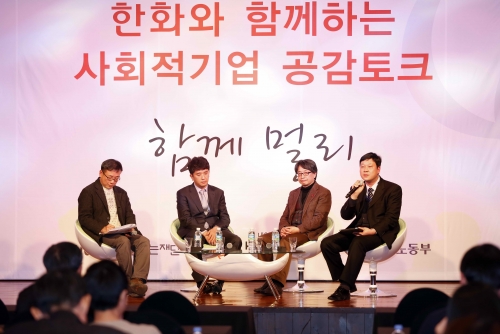 한화는 지난해부터 사회적기업에 대한 지원사업을 도입해 실시 중이다. 사회적기업과의 동반성장을 모토로, 친환경적 가치 창출을 목적으로 한 비즈니스 모델을 가진 사회적기업을 재정적으로 지원하고 더불어 제품개발·홍보마케팅·멘토링 등 역량강화를 위한 다양한 프로그램을 운영한다. 대상 기업은 지난해 18개를 선정한 데 이어 올해는 20개로 늘어났다.