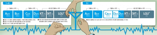 LTE 주파수 할당방안 5개 안이 공개된 뒤 이통3사 간 난타전이 불을 뿜으면서 정부의 고민도 깊어지고 있다.