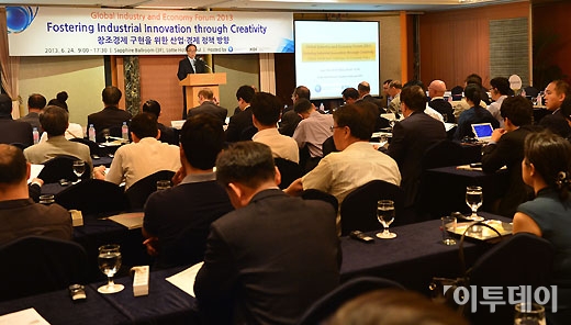 2013 글로벌 산업경제 포럼이 24일 서울 중구 롯데호텔에서 열렸다. 이날 포럼에 참석한 김준경 한국개발연구원장이 박수를 받으며 입장하고 있다. 양지웅 기자 yangdoo@