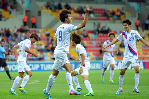 하지만 한국은 끊임없는 공세를 퍼부었고 후반 31분 김현(성남)이 동점골이 뽑아냈다. 상대 골키퍼를 제친 심상민(중앙대)이 김현에게 공을 그대로 패스했고 김현이 바로 골로 연결시켰다.
