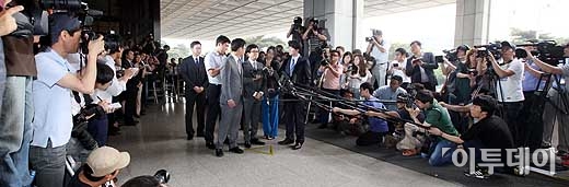 비자금 조성 및 탈세의혹을 받고 있는 이재현 CJ그룹 회장이 25일 오전 서울 서초동 중앙지방검찰청에 출석, 취재진의 질문에 답하고 있다. 이 회장은 CJ그룹의 주식을 차명으로 거래해 양도세 및 소득세 510억원을 내지 않은 혐의를 받고 있다. 방인권 기자 bink7119@