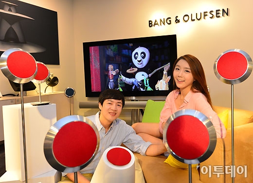 덴마크 홈 엔터테인먼트 브랜드 뱅앤올룹슨이 25일 서울 명동 롯데백화점 내 매장에서 5.1채널 홈시어터 베오랩 14를 선보이고 있다. 양지웅 기자 yangdoo@