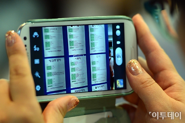 2013 서울여성 일자리박람회가 25일 오후 광진구 여성능력개발원에서 열렸다. 박람회장을 찾은 한 여성 구직자가 스마트폰으로 채용 정보를 기록하고 있다. 노진환 기자 myfixer@