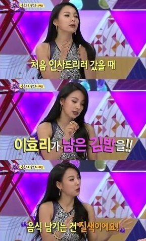 이어 이효리는 “김밥을 먹으러 갔었다. 그런데 옆 테이블 손님이 김밥을 거의 먹지 않고 그냥 나가시더라. 그래서 어머니께 남은 김밥을 내가 먹겠다고 했다”며 “그 모습을 보고 후한 점수를 땄다”고 고백했다.