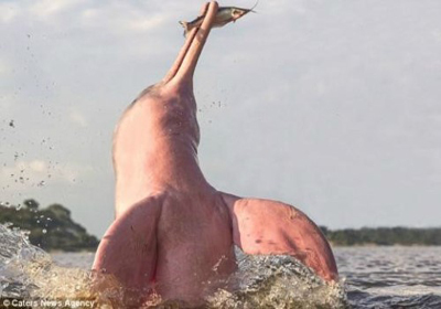 영국 일간지 데일리메일은 25일(현지시간) 아마존강 지류 리에노그로강에서 포착된 분홍돌고래 사진을 공개했다.