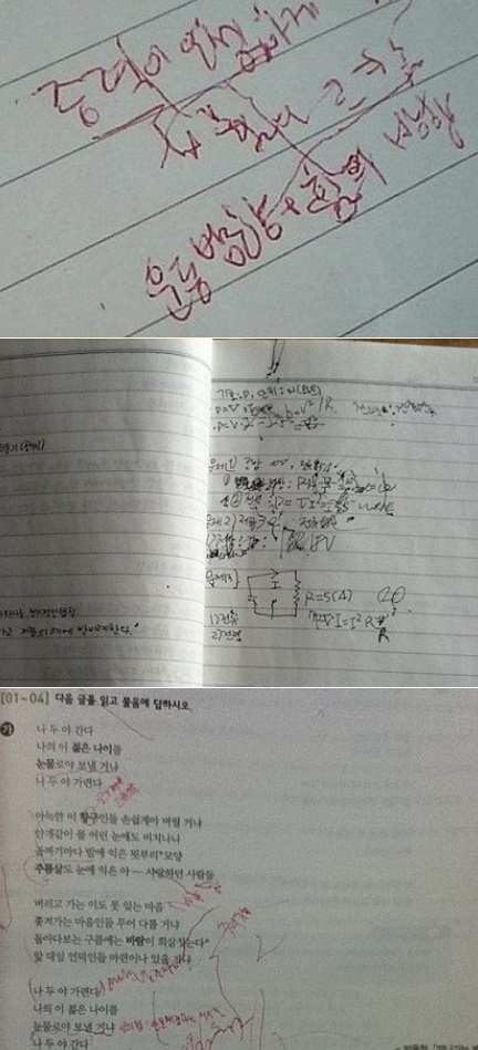 사진 속에는 글쓴이도 알아보지 못할 정도로 엉망인 글씨들이 담겨 있다. 수업 중에 졸면서 쓴 것이다. 손에 힘이 풀리면서도 끝까지 필기를 이어가겠다는 의지가 엿보인다.