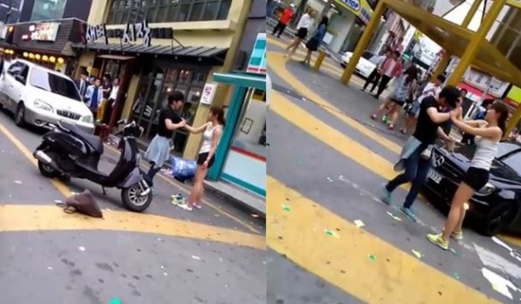 지난 23일경 한 시민이 촬영해 페이스북에 올려 인터넷상에서 급속히 퍼진 것으로 추정되는 5분 분량의 동영상에는 연인으로 보이는 남녀가 도로 한복판에서 난투극을 벌이는 장면이 담겨 있다.
