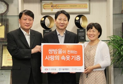 쌍방울은 27일 서울 청담동 본사에서 서울시 노숙인들을 위해 여름 내의 1200점을 서울시에 전달했다. 이번 기부는 서울시•서울노숙인시설협회가 기업•단체의 협조를 받아 취약계층에 여름 옷을 지원하는 ‘희망옷나눔 1004 릴레이’ 프로그램에 따라 이뤄졌다. (사진=쌍방울)