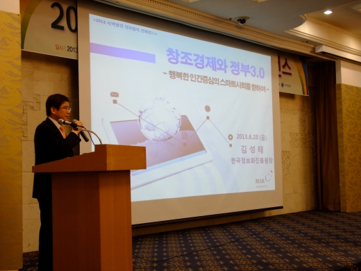 김성태 한국정보화진흥원장은 “창조경제와 정부3.0은 맞춤형 국민행복을 실현하는 저비용 고품질의 국정서비스”라고 강조했다.