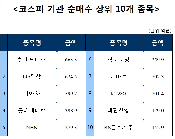 [주간 코스피 기관 순매수 상위 10개 종목]