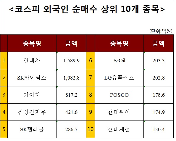 [주간 코스피 외국인 순매수 상위 10개 종목]