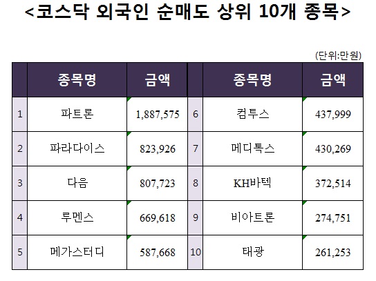 [주간 코스닥 외국인 순매도 상위 10개 종목]