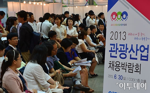 30일 서울 삼성동 코엑스에서 열린 ‘2013년 관광산업 채용 박람회’에 구직자들이 붐비고 있다. 이번 박람회는 관광 분야 일자리 창출을 위해 문화체육관광부 주최로 이날 하루 동안 열렸다. 양지웅 기자 yangdoo@