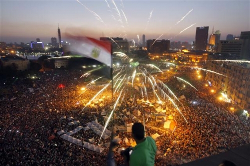 무함마드 무르시 이집트 대통령의 취임 1주년을 맞은 지난달 30일(현지시간) 수도 카이로의 타흐리르 광장에 50만명 이상이 참가해 반정부 시위를 벌였다. 이날 이집트 곳곳에서 수백만 명이 시위에 참가해 경제난과 치안 부재 등의 책임을 물어 무르시 대통령의 퇴진과 함께 조기 대통령 선거를 촉구했다. 카이로/AP연합뉴스