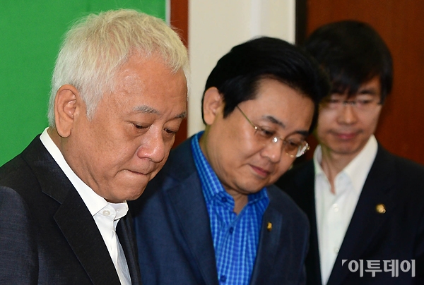 김한길 민주당 대표와 전병헌 원내대표가 1일 오전 여의도 국회 당대표실에서 열린 최고위원회의에 참석하고 있다. 노진환 기자 myfixer@