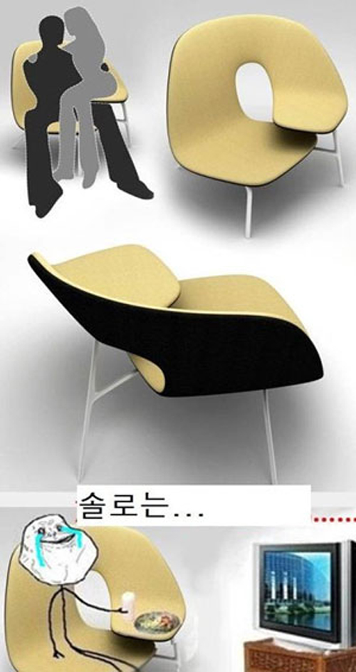‘커플용 의자 솔로 사용법’ 사진에 네티즌들은 “커플용 의자 솔로 사용법 정말 눈물난다”, “정말 저런 커플용 의자가 판매되는 걸까?”, “커플과 함께 앉고 싶다” 등의 반응을 보였다.