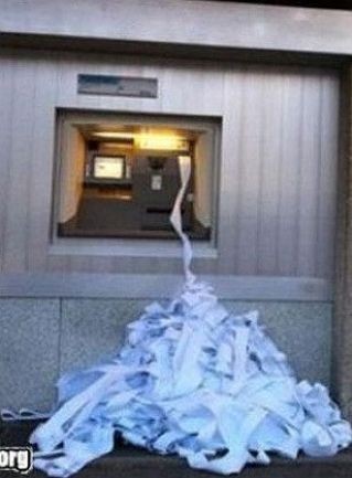 ‘토하고 있는 현금인출기’ 사진 속에는 벽면에 설치된 현금인출기 모습이 담겨 있다. 하지만 현금인출기가 고장이라도 난 듯 명세표가 끊임없이 쏟아져 나오고 있다.