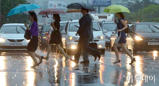 [포토]절로 빨라지는 장맛 속 출근길