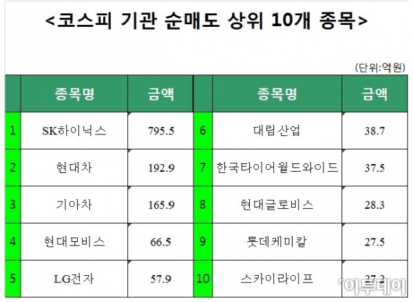 #코스피기관순매도상위10개종목