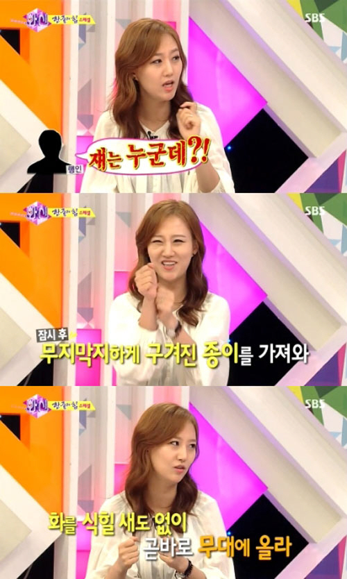 또 "사인을 해 드렸는데 보란 듯이 구겨버렸다"며 "바로 무대에 올라야 했기 때문에 정신 나간 아이처럼 노래를 불렀다. 분노를 삮이며 '술 드셨겠지'라고 생각하고 털어버렸다. 다행히 내가 기억력이 좋지 않고 웃음이 많아서 잊게 되더라"고 대범한 모습을 보였다.