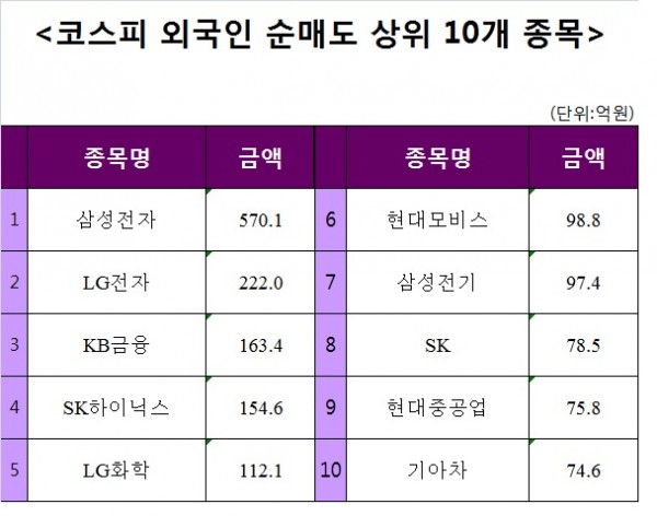 [코스피 외국인 순매도 상위 10개 종목]