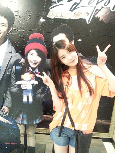 사진 속 아이유는 2011년 '김필숙' 역할을 맡았던 '드림하이' 패널 앞에서 포즈를 취하고 있다. 자신의 모습을 '도플갱어'라고 표현한 아이유의 센스가 웃음을 자아낸다.