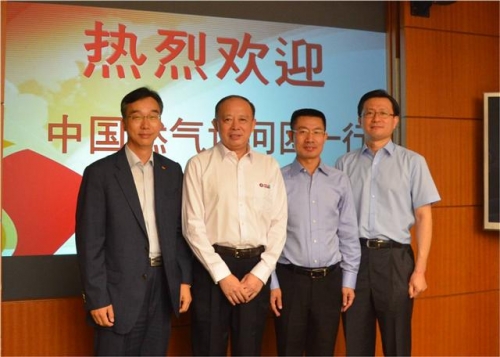 ▲SK E&S 본사를 방문한 차이나가스홀딩스 관계자. 한치우 SK E&S 경영지원부문장(왼쪽부터), 펑쭤즈 CGH 부총재, 마진롱 CGH 부총재, 유정준 SK E&S 대표이사 사장