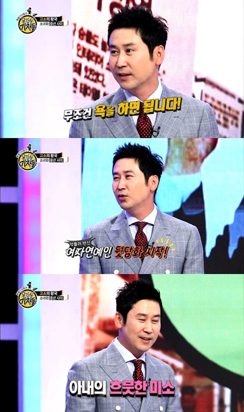 이에 신동엽은 "집에서 아내가 TV를 보며 물어본다"며 "결혼을 하면 아내가 물어보는 여자연예인에 대해서 무조건 욕을 하면 된다"고 말해 웃음을 자아냈다.