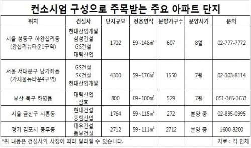 이밖에 부산 북구 화명동에서는 대림산업과 삼호가 뭉쳐 800가구 중 전용 60~100㎡ 529가구를 이달 중 분양할 예정이다. 경기도 김포 풍무동에는 대우건설과 동부건설이 전용 59~111㎡ 2713가구를 분양 중이다.