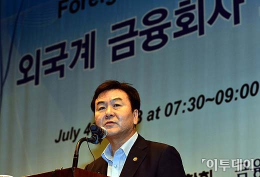 신제윤 금융위원장이 4일 오전 서울 중구 웨스턴 조선호텔에서 열린 ‘외국계 금융회사 초청 금융위원장 간담회’에서 인사말을 하고 있다. 방인권 기자 bink7119@