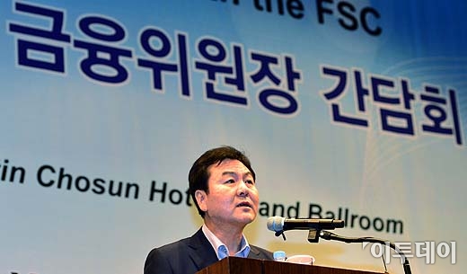 신제윤 금융위원장이 4일 오전 서울 중구 웨스턴 조선호텔에서 열린 ‘외국계 금융회사 초청 금융위원장 간담회’에서 인사말을 하고 있다. 방인권 기자 bink7119@
