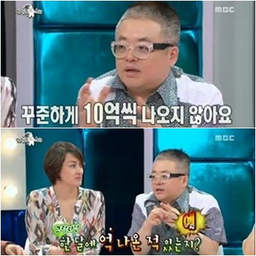 이어 그는 “나도 가끔 놀랄 때가 있지만 저작권료는 들쑥날쑥하다”며 “꾸준하게 (한 해)10억원씩 나오지는 않는다”고 덧붙였다.