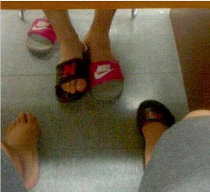 최근 한 온라인 커뮤니티에는 자신의 슬리퍼 한 짝을 맞은편 책상에 앉아 있는 사람이 신고 있는 '도서관 난감한 상황' 사진이 게재됐다. 게시자는 도서관에서 슬리퍼를 벗고 공부하다가 다시 신으려고 보니 다른 사람이 한 짝을 가져가서 신고 있었다고 설명했다.