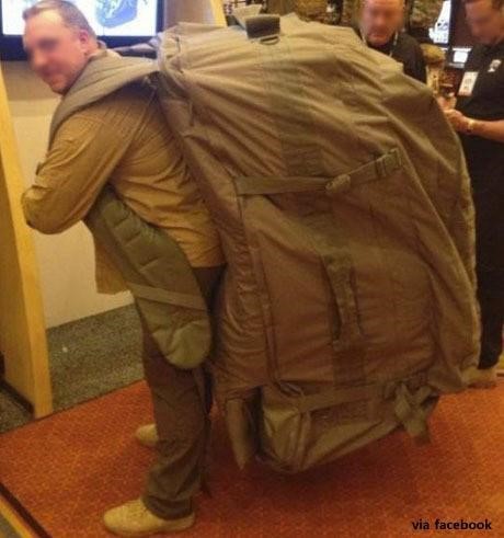 공개된 사진 속에는 한 남성이 배낭을 매고 있다. 자신의 몸집보다 훨씬 큰 배낭을 매고 힘들어 하는 남자의 모습이 보는이들의 웃음을 자아낸다.
