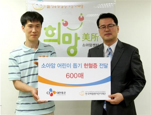 CJ대한통운은 한국백혈병어린이재단에 헌혈증 600장을 기증했다고 5일 밝혔다.