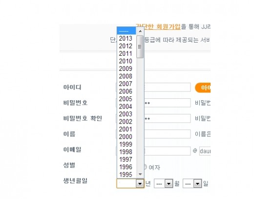 공개된 사진은 웹사이트 회원가입 나이를 입력하는 화면으로 자신의 생년월일을 찾기 위해 스크롤을 아래로 내리는 모습이 담겨 있다.