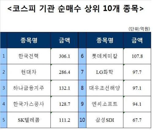 [코스피 기관 순매수 상위 10개 종목]
