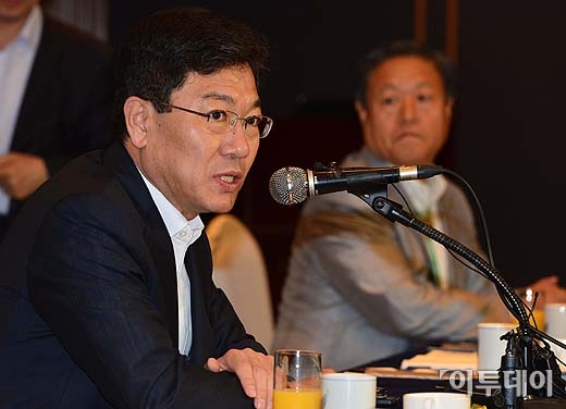 윤상직 산업통상자원부 장관이 8일 오전 서울 서초구 반포동 팔래스 호텔에서 열린 ‘한-중 FTA 관련 농수산업계 간담회’에서 모두발언을 하고 있다. 방인권 기자 bink7119@