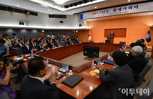 박근혜 정부들어 첫 번째 총영사회의가 8일 세종로 정부서울청사 별관에서 열렸다. 이날 회의에서 정홍원 국무총리가 격려사를 하고 있다. 전세계 각 지역을 관할하는 53명의 총영사, 분관장, 출장소장들은 이날 회의를 통해 해외에서도 ‘국민행복시대’를 열어가기 위한 구상과 아이디어를 공유했다. 양지웅 기자 yangdoo@