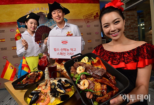 CJ 푸드빌이 운영하는 프리미엄 스테이크하우스 빕스가 8일 서울 중구 퇴계로 빕스매장에서 여름 한정 메뉴인 스페인 메뉴 16종을 선보이고 있다. 빕스는 여름한정 스페인 세트메뉴를 주문하는 고객을 대상으로 이벤트를 진행해 스페인 여행권 등 경품을 증정한다. 양지웅 기자 yangdoo@