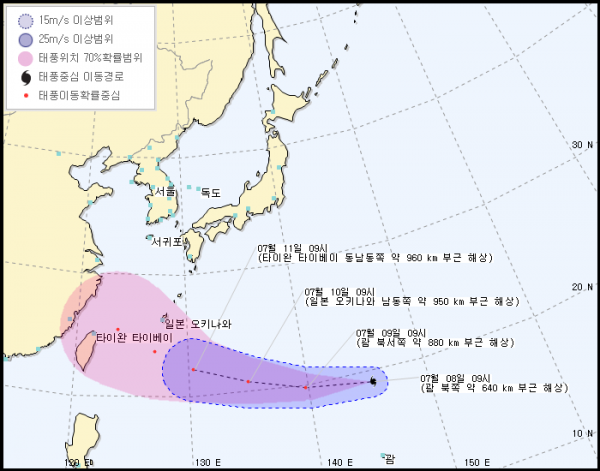 ▲제7호 태풍 솔릭(SOULIK) 8일 예보(기상청)