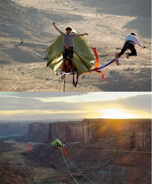 공중 캠프장을 만드는데 성공한 주인공은 앤디 루이스와 친구들이다. 그들은 미국 유타주 모아브에 위치한 협곡 사이에 밧줄을 치고 공중 캠프장을 만드는 데 성공했다.