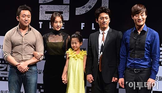 (왼쪽부터)배우 마동석, 수애, 박민하, 장혁, 이희준이 9일 오전 서울 강남구 신사동 압구정 CGV에서 열린 ‘감기’ 제작발표회에서 포토타임을 갖고 있다. 방인권 기자 bink7119@