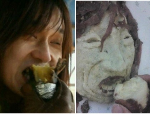 사진 속 고구마 요리는 삶은 고구마와 껍질을 이용해 가수 김경호의 모습을 리얼하게 재연하고 있다. 특히 뒤집힌 눈까지 표현돼 있어 박수를 받았다.