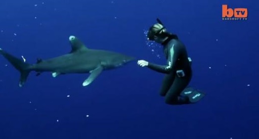 식인 상어와 헤엄치는 여성 영상이 공개돼 화제다.